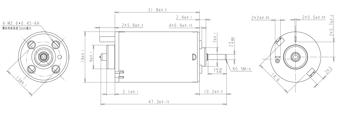 輸出軸直徑(mm):φ2.0(臺階軸,軸徑φ2.5)